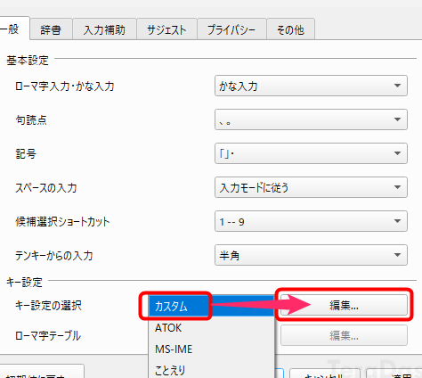 - 「キー押下による入力モードの切り替え」を無効にする。