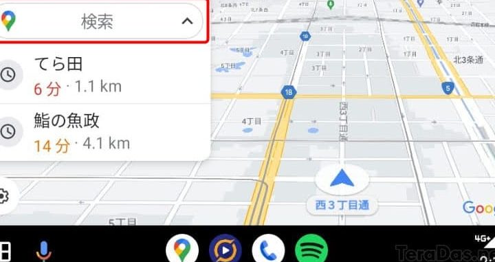 Android Autoとの連携では、Googleマップアプリで目的地を検索し、「Android Auto に送る」をタップします。次に、Android Autoアプリが起動し、ナビゲーションを開始することができます。