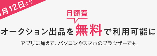 | ヤフオクの月額無料化 | 2018年11月12日から、ブラウザからのオークション出品を月額無料に変更。 |