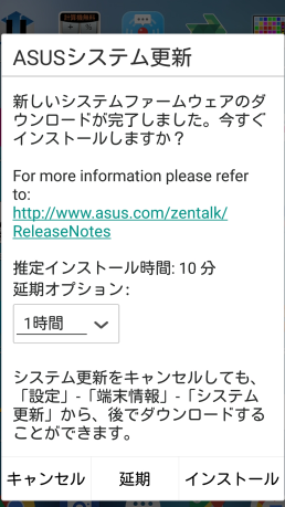 国内版ZenFone 2(ZE511ML)のシステムアップデート
