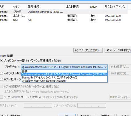 VirtualBoxのネットワーク設定