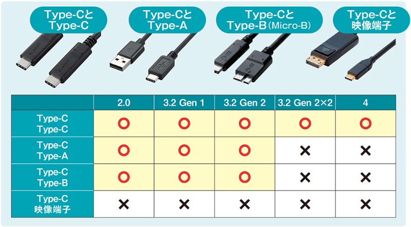 - USB Type-Cでは、A端子とB端子の区別がなくなり、どちらの向きでも繋ぐことができます。