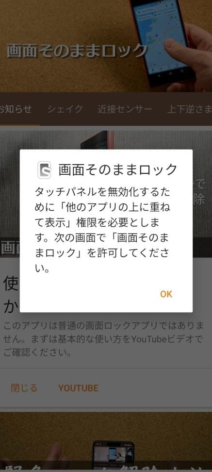 “アプリを動したまま、画面タップだけ停止できる”誤タップ防止アプリ「画面そのままロック」