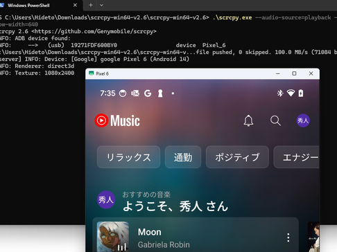 Bluetoothヘッドセットの通話ボタンから「Googleアシスタント」を起動する方法scrcpyの機能