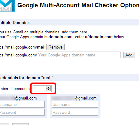 このChrome拡張機能を設定するには、拡張機能のアイコンをクリックし、設定メニューを開きます。そこで、複数のGmailアカウントのメールアドレスとパスワードを追加します。