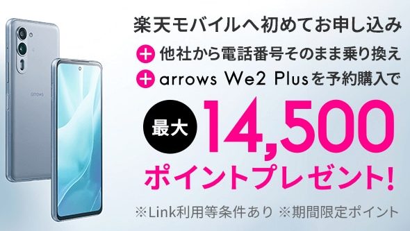 楽天モバイル、端末セット購入で最大14,500ポイントプレゼントのキャンペーン実施