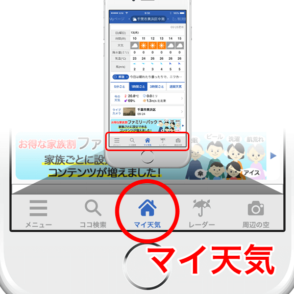 ウェザーニュースタッチの初期画面を天気予報にする方法