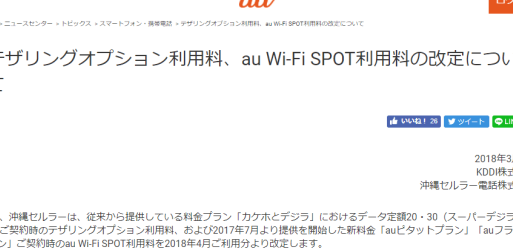 au、スーパーデジラ等のテザリング料金の無料キャンペーンを終了。2018年4月から月額500円に