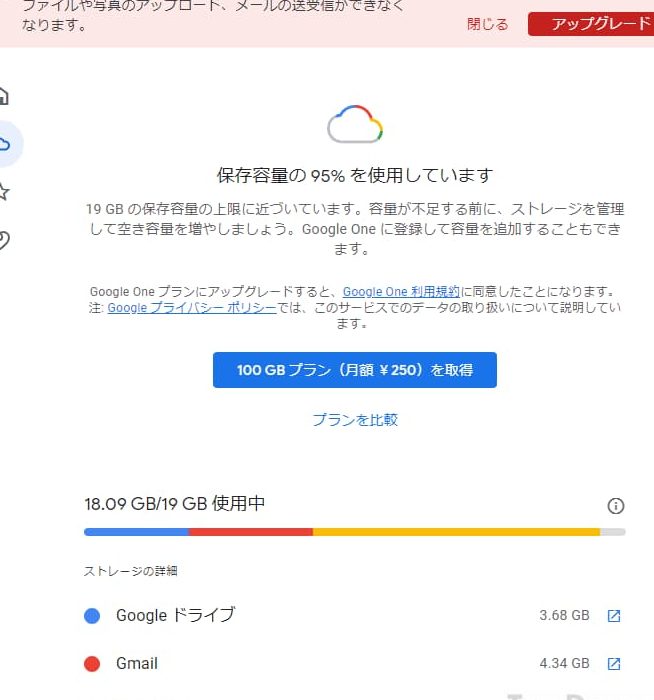 Googleドライブの容量を確認し、現在の使用状況を把握します。
