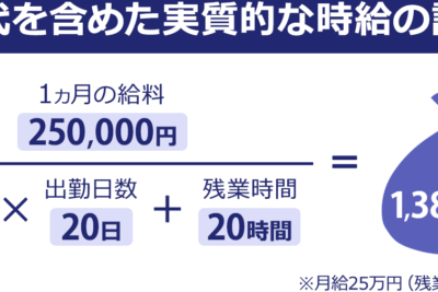 残業代は、法定労働時間を超えた労働時間に対して支払われる賃金です。残業代は、通常、基本給の1.25倍が支払われます。例えば、基本給が1,000円のアルバイトで、1時間残業した場合、残業代は1,000円 × 1.25 = 1,250円となります。