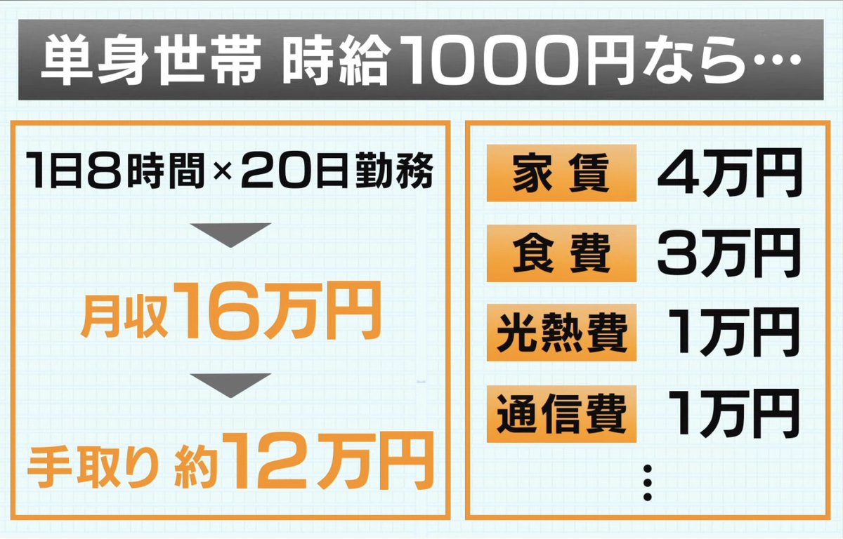 - 時給1000円は最低賃金よりは高いですが、物価の高い地域では生活費が不足する可能性もあります。