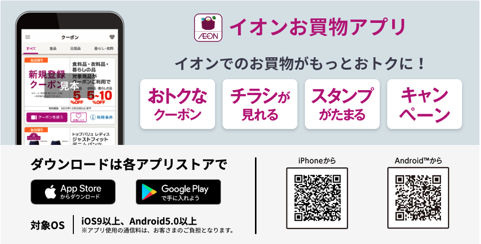 - 店舗検索: 近くのイオン店舗を検索し、営業時間や地図を確認できます。