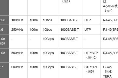 - Category 6A: 最も高価で、長距離での高速度に対応している