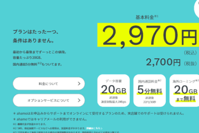 ahamoは、ドコモが提供する格安SIMサービスです。従来のドコモの料金プランよりも料金が安く、データ容量も充実しています。ahamoは20GBで2,700円という料金設定となっており、旧プランの「ドコモの料金プラン」と比較すると、大幅に安くなっています。