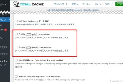W3 Total Cache の設定 は、gzip 圧縮の場合と同じように、General Settings > Caching > Browser Cache の Vary Headers オプションで、Accept-Encoding が選択されていることを確認します。